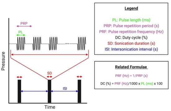 - Choi, J.J.; Selert, K.; Gao, Z.; Samiotaki, G.; Baseri, B.; Konofagou, E.E. Noninvasive and localized blood-brain barrier disruption using focused ultrasound can be achieved at short pulse lengths and low pulse repetition frequencies. J. Cereb. Blood Flow Metab. 2011, 31, 725–737. [Google Scholar] [CrossRef] [PubMed]