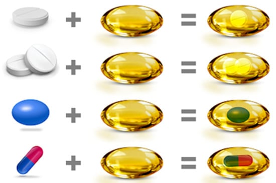Soft gelatin capsules for fixed-dose combination drugs—Unigel™ technology that allows the use of other delivery systems, such as tablets, capsules, micro granules, or pellets, closed in one soft capsule, the so-called “softgel” [21].