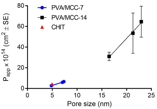 | Hydrogel | Permeability Coefficient × 1014 (cm2) | Specific Water Content | Pore Size (nm) | |