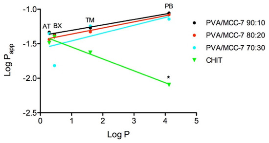 | Hydrogel | Papp × 102 (cm/h) | Slope | R2 | |||