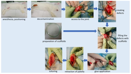 All surgical procedures were performed under aseptic conditions of the operating room at the Animal Breeding Laboratory of the Medical University of Warsaw. The surgical operations were performed according to the scheme (Figure 3):