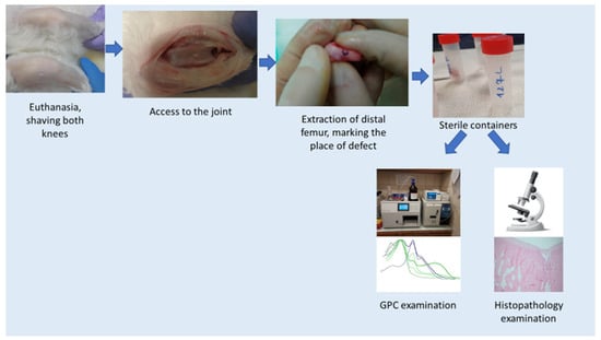 After the set time of 8, 16, 24 weeks of observation, the rabbits were terminated. Termination procedures were performed according to the scheme (Figure 4):