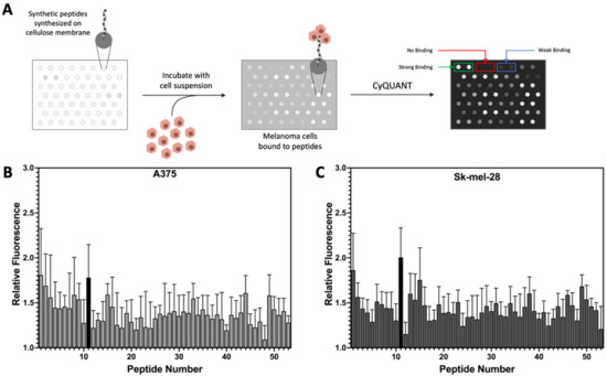 - Ahmed, S.; Mathews, A.S.; Byeon, N.; Lavasanifar, A.; Kaur, K. Peptide arrays for screening cancer specific peptides. Anal. Chem. 2010, 82, 7533–7541. [Google Scholar] [CrossRef]