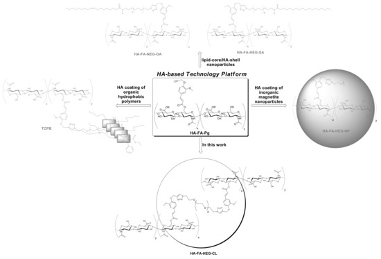 Development and applications of the HA-based technology platform employing HA-FA-Pg graft copolymers.