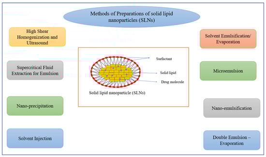 Methods of preparation of solid lipid nanoparticles (SLNs).