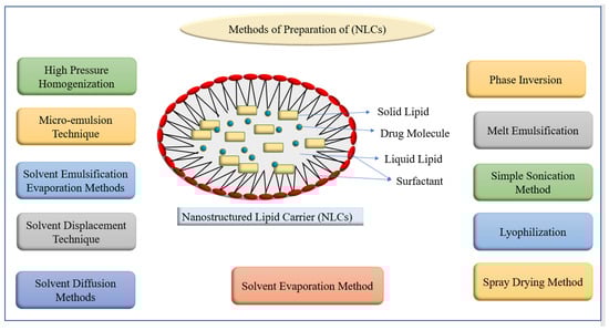Methods of preparation of nanostructured lipid carriers (NLCs).