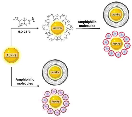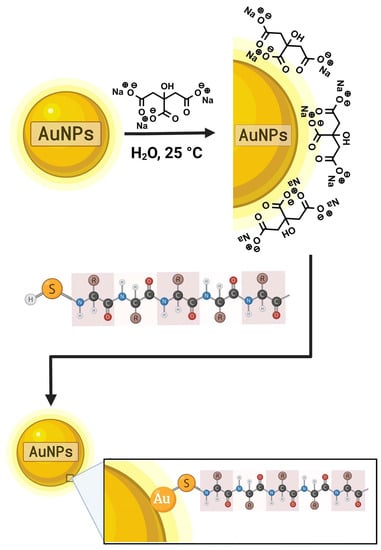 - Al-Johani, H.; Abou-Hamad, E.; Jedidi, A.; Widdifield, C.M.; Viger-Gravel, J.; Sangaru, S.S.; Gajan, D.; Anjum, D.H.; Ould-Chikh, S.; Hedhili, M.N. The structure and binding mode of citrate in the stabilization of gold nanoparticles. Nat. Chem. 2017, 9, 890–895. [Google Scholar] [CrossRef] [PubMed]