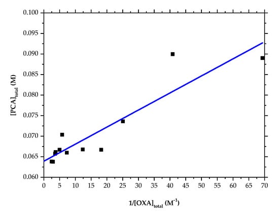 A plot of [PCA] vs. 1/[OXA] for the calculation of Ksp and K11.