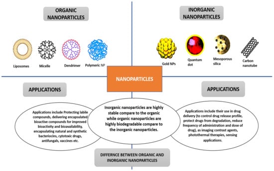 Figure 2. Nanoparticles’ classifications, applications, and differences.