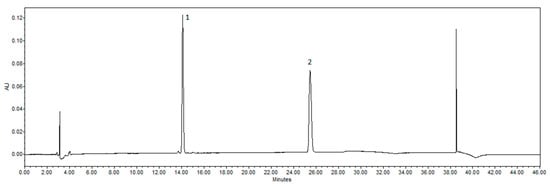 Chromatograms of standards detected by HPLC. Peaks identified: 1—naringin; 2—naringenin.