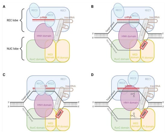 - Nishimasu, H.; Ran, F.A.; Hsu, P.D.; Konermann, S.; Shehata, S.I.; Dohmae, N.; Ishitani, R.; Zhang, F.; Nureki, O. Crystal structure of Cas9 in complex with guide RNA and target DNA. Cell 2014, 156, 935–949. [Google Scholar] [CrossRef] [PubMed] [Green Version]
