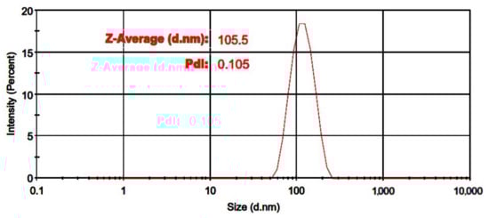 The particle size distribution for the optimized formulation (formulation 13) is depicted in Figure 1. PDI value is important as it shows the uniformity of particles in size; where a low PDI value is desirable as it indicates a narrow particle size distribution. It has been proven that a PDI value > 0.2 is an indication of monodispersed particles [26]. Formulation 13 showed a PDI value of 0.1 which indicates this formulation contained monodispersed particles.