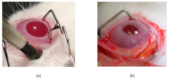 The appearance of the eye in the non-cryo group: (a) immediately after the implant administration and (b) 2 weeks later, after the implant removal.