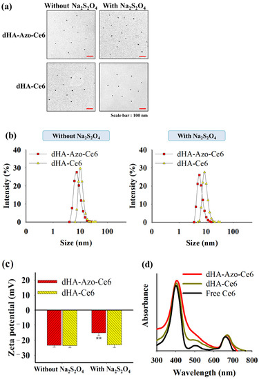 3.2. Characterization of dHA-Azo-Ce6 Particles