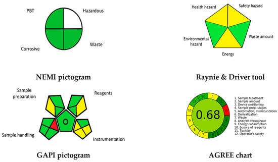 - Pena-Pereira, F.; Wojnowski, W.; Tobiszewski, M. AGREE—Analytical GREEnness Metric Approach and Software. Anal. Chem. 2020, 92, 10076–10082. [Google Scholar] [CrossRef]
