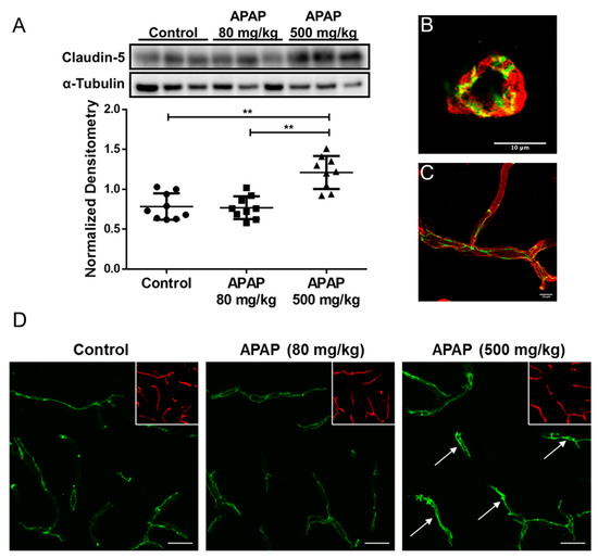 3.3. Increased Claudin-5 Expression in Brain Microvessel after High-Dose APAP Treatment