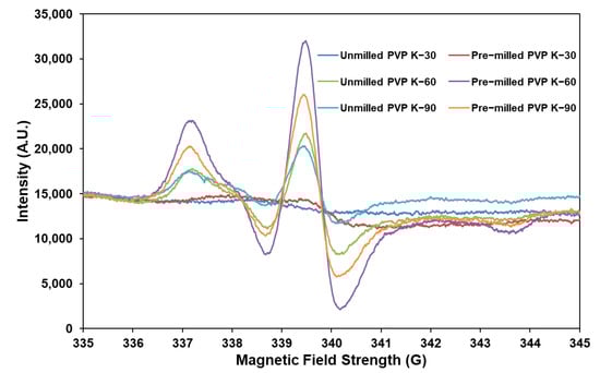 Enhancement of hyperfine signals in pre−milled povidones.