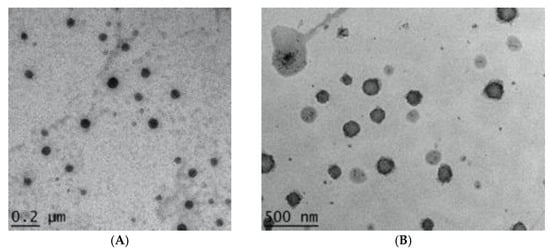 The encapsulation efficiency results showed that about 75% of berberine was encapsulated in the BP-LCNs formulation (Table 4). The TEM visualization (Figure 6) revealed that BP-LCNs were small and spherical with a flower-like structure, in addition to being monodispersed and uniform in size (Figure 6B).