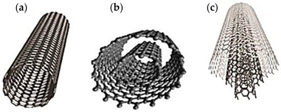 Structure of single-walled (a), double-walled (b), and multi-walled (c) CNTs. Adapted with permission from [37]. Copyright 2020 Elsevier B.V.