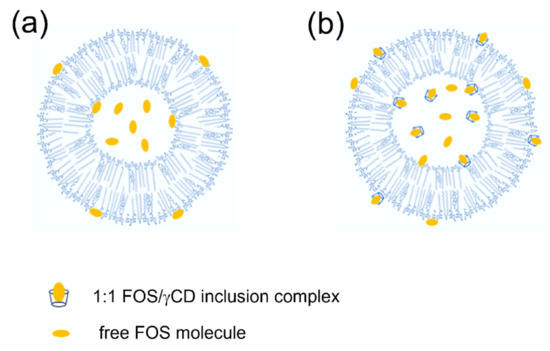 Proposed drawing of (a) FOS-loaded niosomes and (b) FOS/γCD loaded noisome.