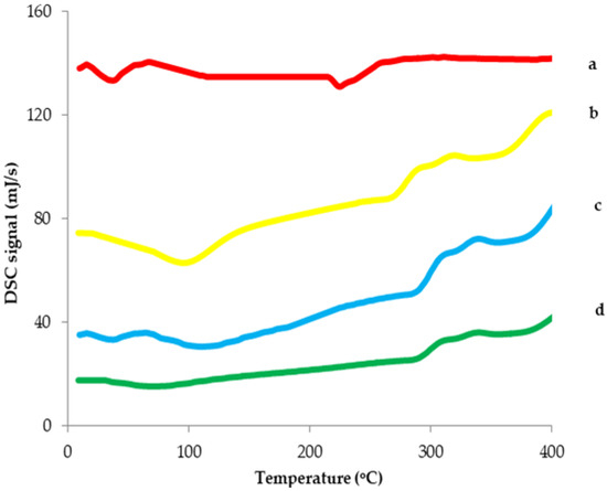 These results are in agreement with da Silva et al. [20] who reported the disappearance of the characteristic peak of 6-G molecule after the formation of the inclusion complex with βCD. Moreover, Davaatseren et al. [31] found that after the development of the inclusion complex of cinnamaldehyde with βCD, the endothermic peak of cinnamaldehyde disappeared with the formation of a new peak with a different thermal transition. Pais et al. [21] reported that the complex of γ –CD with gingerols demonstrated a significant change in the DSC thermogram. The thermal peak associated with gingerol melting was not detected, and two new thermal events appeared.