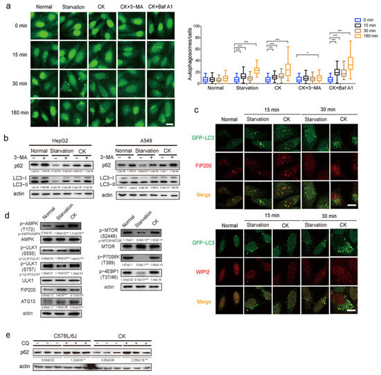 3.4. CK Activates Autophagy by Activating AMPK/ULK1 Pathway