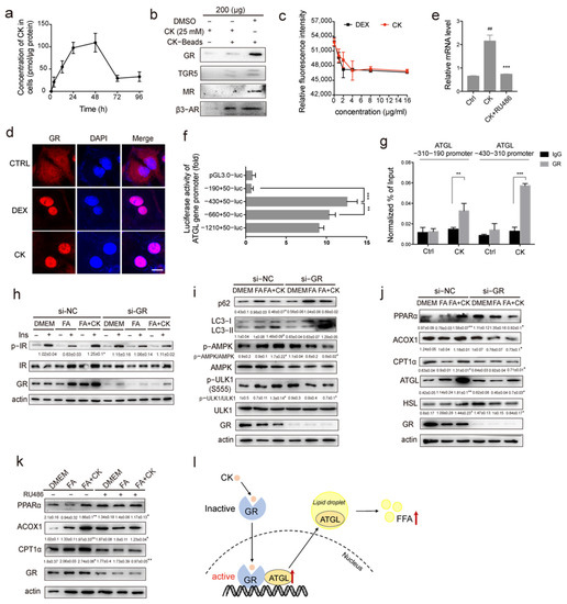 APA StyleYang, S., Liu, T., Hu, C., Li, W., Meng, Y., Li, H., Song, C., He, C., Zhou, Y., & Fan, Y. (2022). Ginsenoside Compound K Protects against Obesity through Pharmacological Targeting of Glucocorticoid Receptor to Activate Lipophagy and Lipid Metabolism. Pharmaceutics, 14(6), 1192. https://doi.org/10.3390/pharmaceutics14061192