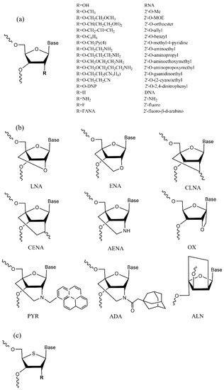 - Wan, W.B.; Seth, P.P. The medicinal chemistry of therapeutic oligonucleotides. J. Med. Chem. 2016, 59, 9645–9667. [Google Scholar] [CrossRef]