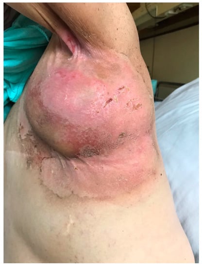 - Singh, M.; Alavi, A.; Wong, R.; Akita, S. Radiodermatitis: A Review of Our Current Understanding. Am. J. Clin. Dermatol. 2016, 17, 277–292. [Google Scholar] [CrossRef]