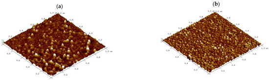 The surface architecture and the topography of nCA and nCA/AFA were analysed via AFM. Figure 6 shows three-dimensional images scanned using tapping mode over a 1 × 1 µm2 surface area. The nCA image in Figure 6a demonstrates nearly spherical nanoparticles with a diameter of 31.63 nm. At the same time, nCA/AFA showed more fine spherical granular surfaces distributed highly uniformly within a diameter of 27.48 nm, as shown in Figure 6b. The surface architecture in vertical dimensions was determined quantitatively by the roughness. Several roughness parameters were considered, as shown in Table 1, such as the average surface roughness (Ra), the maximum surface roughness (Rmax), and the root mean square roughness (Rq). Other parameters, such as surface area differences (Rsa), Kurtosis, and Skewness, were used for horizontal dimension description [36]. The average roughness (Ra) value of nCA was nearly the same as the value of nCA/AFA, indicating that the afatinib drug was encapsulated inside the nCA rather than on the surface. The Rmax is the maximum difference between the highest peak and lowest valleys, and it was larger, with 7.8 nm in nCA compared to 7.2 nm in nCA/AFA.