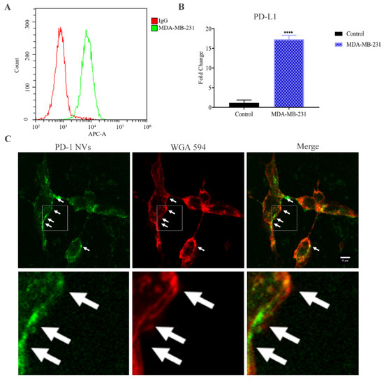 3.2. PD-1-GFP NVs Specifically Bound to PD-L1 on the Surface of MDA-MB-231 Triple-Negative Breast Cancer Cells