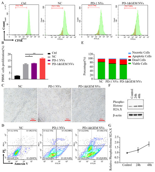 3.4. PD-1&GEM NVs Promoted PBMC Activation and MDA-MB-231 Cell Apoptosis When Co-Cultured