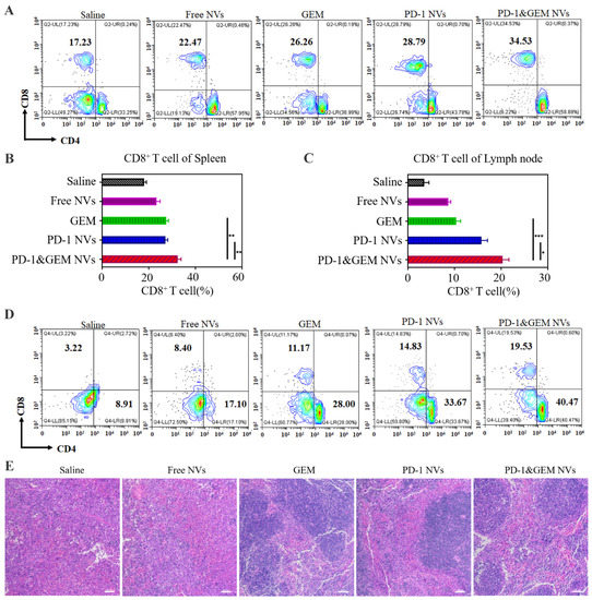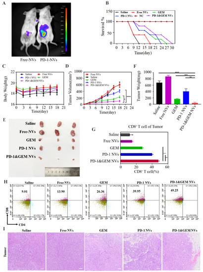 3.5. GEM&PD-1 NVs Inhibited the Growth of TNBC Breast Cancer In Vivo