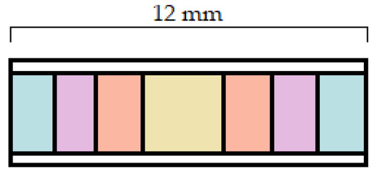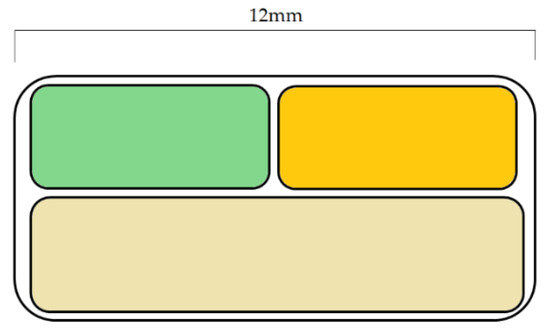 Cross-section of the printed polypills where three diverse compartments were created (labeled with three nonidentical colors) [36].