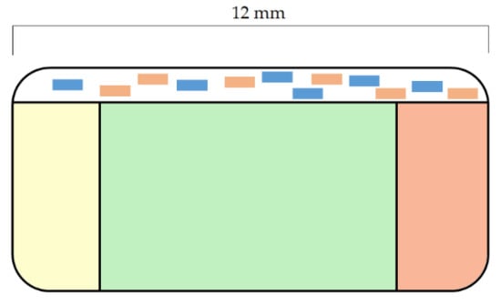 Cross-section of the acetaminophen-containing matrix tablets based on the authors’ figure. The different colors label dissimilar compartments [30].