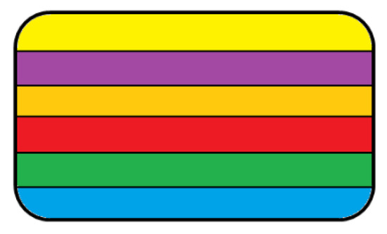 Cross-section of the cylinder-shaped polypill. Each color represents diverse API-containing layers: naproxen—yellow; aspirin—purple; paracetamol—orange; caffeine—red; chloramphenicol—green; and prednisolone—blue [57].