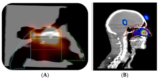 It is well documented that regional deposition of nasal sprays delivered to the nasal cavity is dependent on a large number of factors, including droplet size, velocity, spray orientation, spray cone angle, insertion depth, and nasal geometry [], amongst others. Given that the anatomy can vary significantly, it is best practice to validate in vitro nasal cast models. This is often achieved by comparing in vitro deposition to in vivo deposition by gamma scintigraphy (Figure 9).