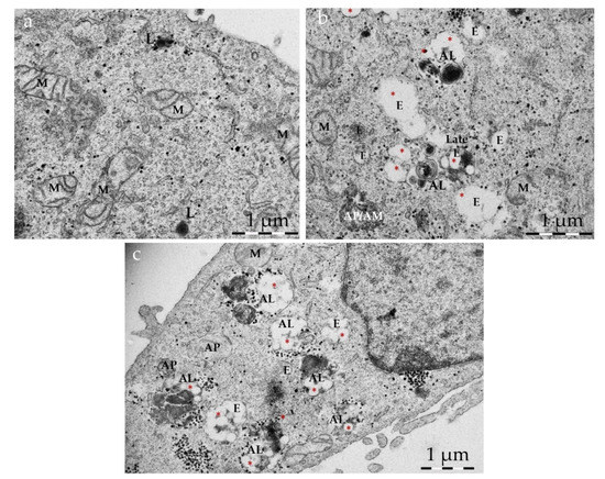 To identify the type of organelles that enclosed NPs, early and late autophagic structures, endosomes, lysosomes and other vesicles were defined following these guidelines [43,44,45,46,47]: