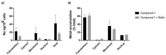 | [Ru(η5-Cp)(P(C6H5)3)(bipy-biotin)]+ (LCR134) | 3.2 ± 1.1 [23] |