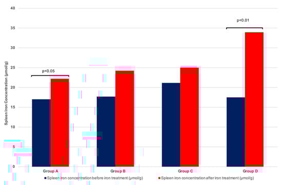 3.4. Quantification of Iron Sequestered in the Liver and Spleen after IV Iron Infusions