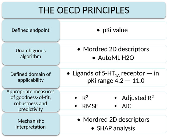The AutoML methods have been used to create the 5-HT1A receptor’s QSAR model. This technique reduces the transparency of the algorithm. To meet the second OECD rule, other prediction methods were sought, but the AutoML H2O model proved to be the best so far. Usage of AutoML techniques offers far greater possibilities than creating a simple QSAR model with, i.e., linear regression.