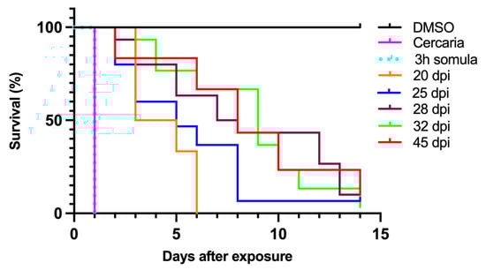- Duvall, R.H.; DeWitt, W.B. An improved perfusion technique for recovering adult schistosomes from laboratory animals. Am. J. Trop. Med. Hyg. 1967, 16, 483–486. [Google Scholar] [CrossRef]