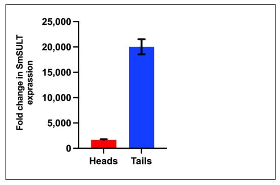 Comparison of SmSULT in cercarial tails vs. heads using qRT-PCR.