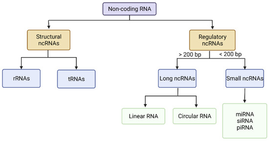 ncRNAs classification [19,21]. (Figure was created with BioRender.com, (accessed on 13 June 2022)). Note: Adapted from [19,21].