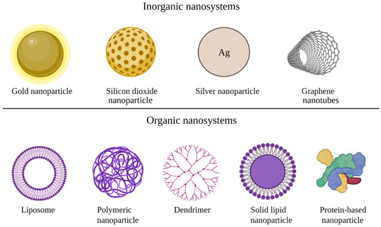 Types of nanosystems used for genetic material delivery. (Figure was created with BioRender.com (accessed on 13 June 2022)).