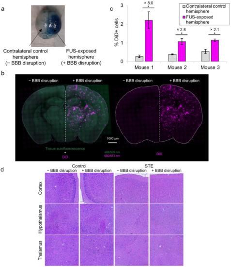 2.21. In Vivo Hemispheric BBB Disruption Procedure