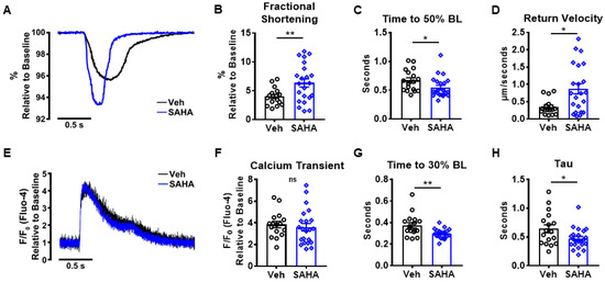 3.1. SAHA Improves Cardiomyocyte Contractility and Calcium Handling