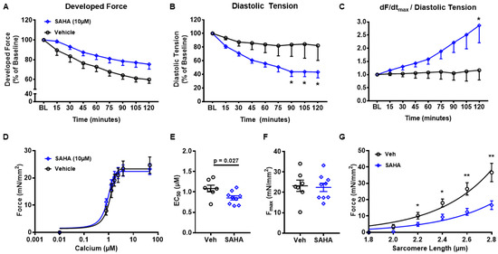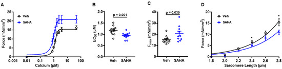 3.2. SAHA Treatment Increases Myofilament Calcium Sensitivity