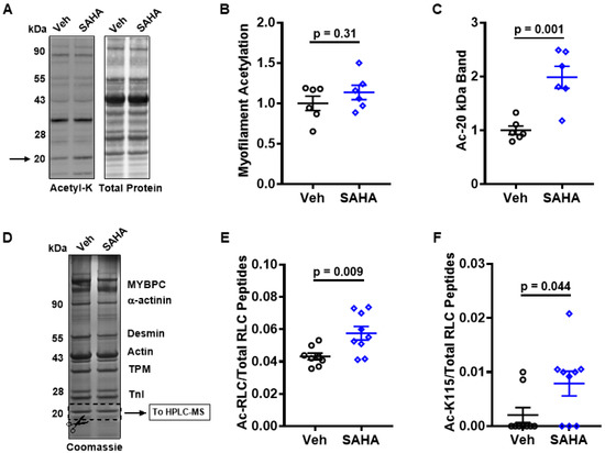 3.3. SAHA Treatment Alters Myosin Regulatory Light Chain Acetylation