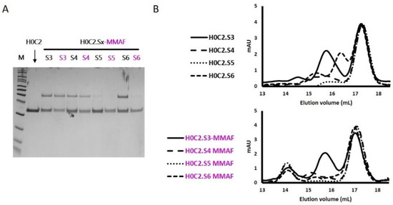 26]. Therefore, we decided that only scFv H0C2.Sx (x = 3 to 6) were suitable to continue the rest of the study, where the two implanted cysteines were correctly incorporated to obtain a satisfactory average DAR (>0.7) for the conjugates.